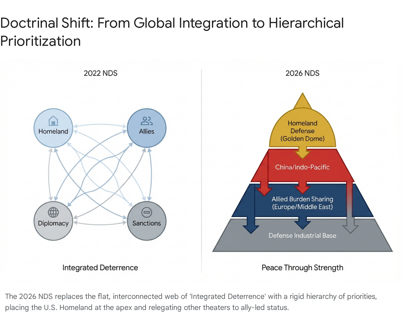 The 2026 National Defense Strategy (NDS), released by the Department of War (DoW) on January 23, 2026, marks a definitive pivot in the United States’ military posture, discarding the 2022 framework of “Integrated Deterrence” in favor of a new, assertive doctrine titled “Peace Through Strength.” This report, produced by a multidisciplinary team of national security, intelligence, warfare, and space specialists, provides an exhaustive analysis of the strategy, its origins, and its profound implications for the global order.