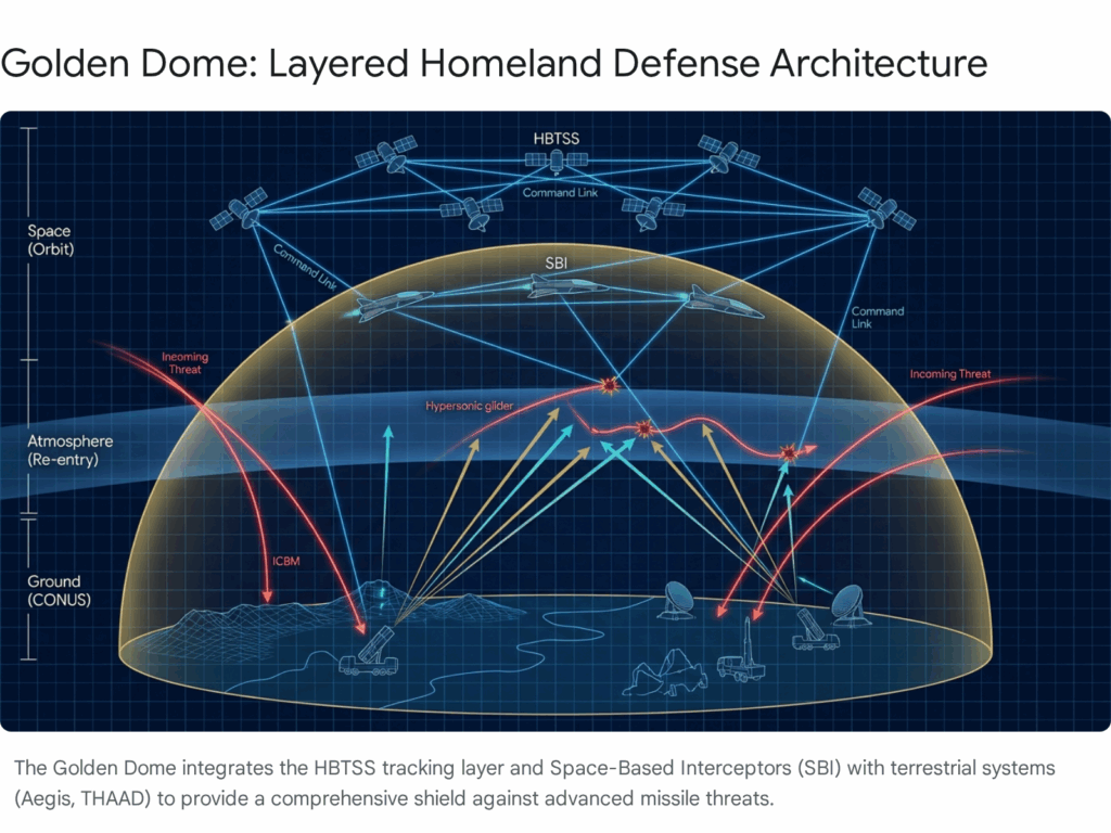 | 2 | “Golden Dome” Initiative | Neutralize missile coercion from peer adversaries (China/Russia).3 | Massive investment in Space-Based Interceptors (SBI) and HBTSS layers; breach of previous space weaponization norms. |