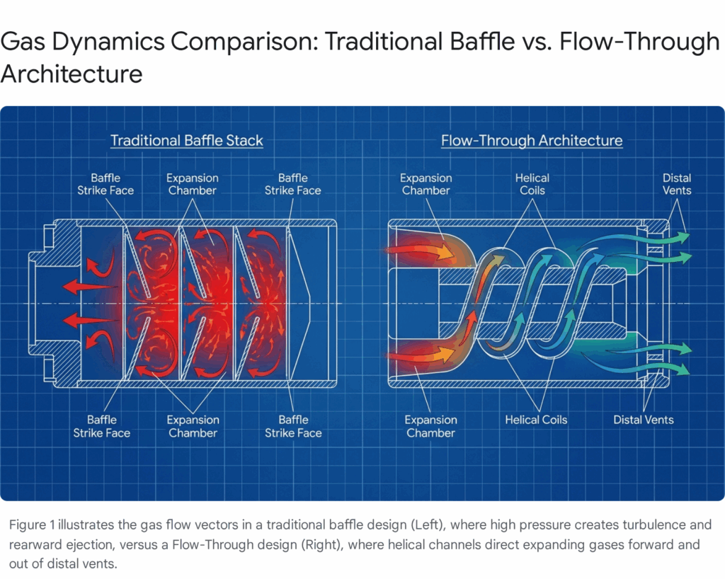 - Flow-Through Silencers vs. Conventional Baffle Silencers on …, accessed January 1, 2026, https://pewscience.com/sound-signature-reviews-free/sss-6-124-research-supplement-flow-through-forward-flux-surge-bypass-conventional-300-blk-rifle-silencers