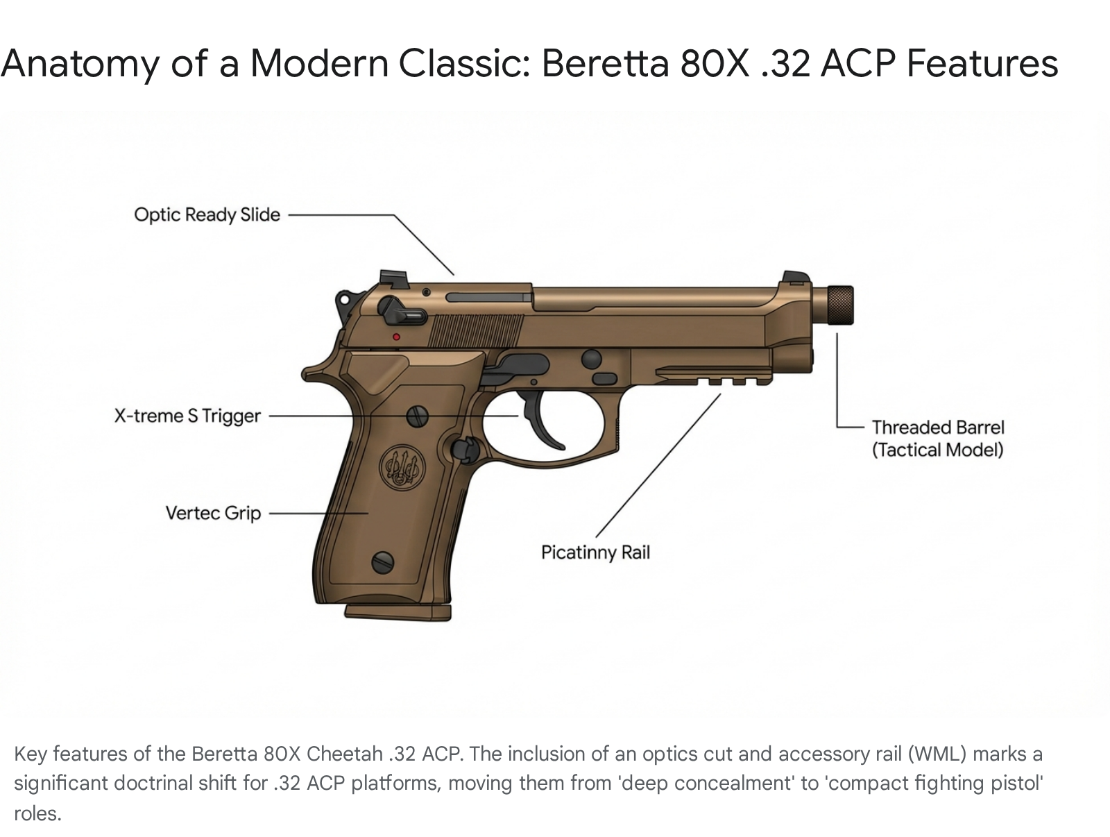 The re-introduction of the Beretta Cheetah platform, specifically the new 80X model in .32 ACP, serves as the primary catalyst for the current discussion on caliber resurgence. It represents a shift from “utility” firearms to “lifestyle” firearms.