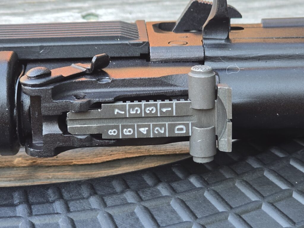 From the adoption of the original AK-47 through the modernized AKM in the late 1950s and the AK-74 in the 1970s, the fundamental sight design remained unchanged. The AKM’s sight leaf was extended to a 1000-meter maximum setting and incorporated the “П” battle zero, and some models began to feature a “dovetail” side rail for mounting night vision optics, but the core system of a forward-mounted tangent leaf and protected front post was untouched.18 When the AK-74 was introduced with the new 5.45x39mm cartridge, the sight leaf was simply recalibrated for the new round’s flatter trajectory; the mechanical design was identical.5