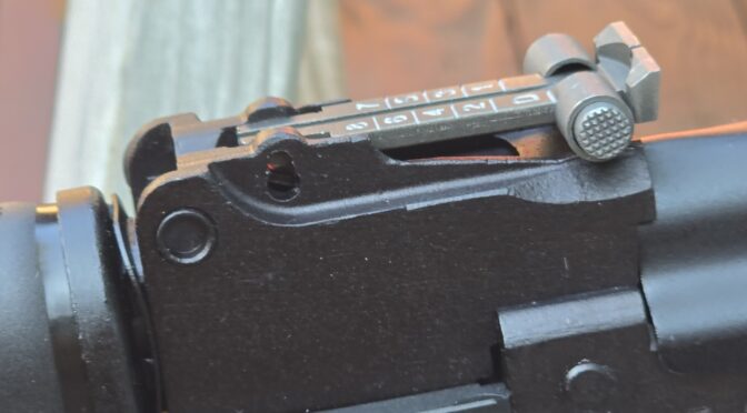 From the adoption of the original AK-47 through the modernized AKM in the late 1950s and the AK-74 in the 1970s, the fundamental sight design remained unchanged. The AKM’s sight leaf was extended to a 1000-meter maximum setting and incorporated the “П” battle zero, and some models began to feature a “dovetail” side rail for mounting night vision optics, but the core system of a forward-mounted tangent leaf and protected front post was untouched.18 When the AK-74 was introduced with the new 5.45x39mm cartridge, the sight leaf was simply recalibrated for the new round’s flatter trajectory; the mechanical design was identical.5