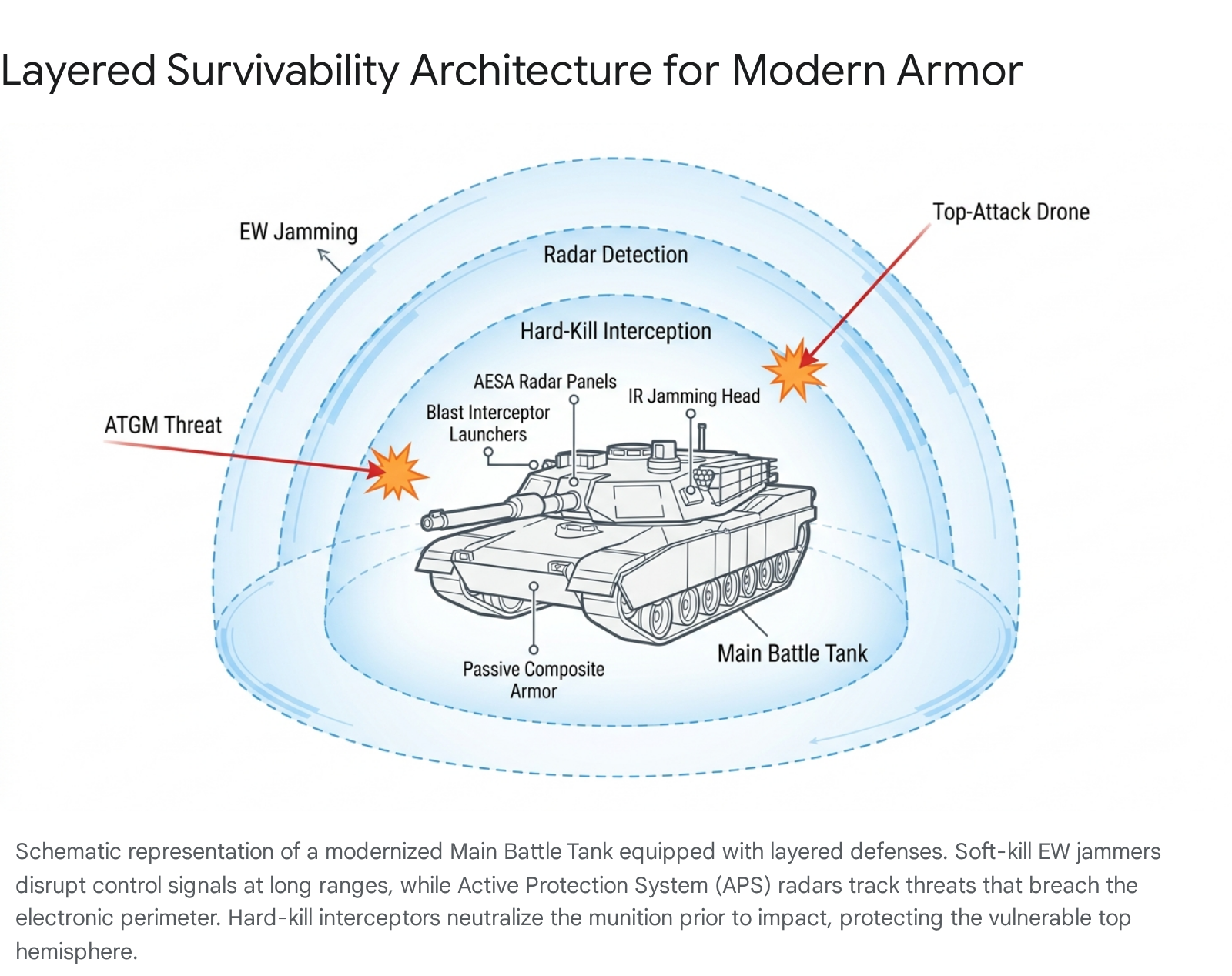 The sudden ubiquity of aerial threats has laid bare the fundamental design biases of legacy armored vehicles. For the past seventy years, tank design prioritized protection against direct-fire kinetic energy penetrators and ground-launched anti-tank guided missiles. Consequently, heavily layered composite armor and explosive reactive armor were concentrated on the frontal arc and turret cheeks.