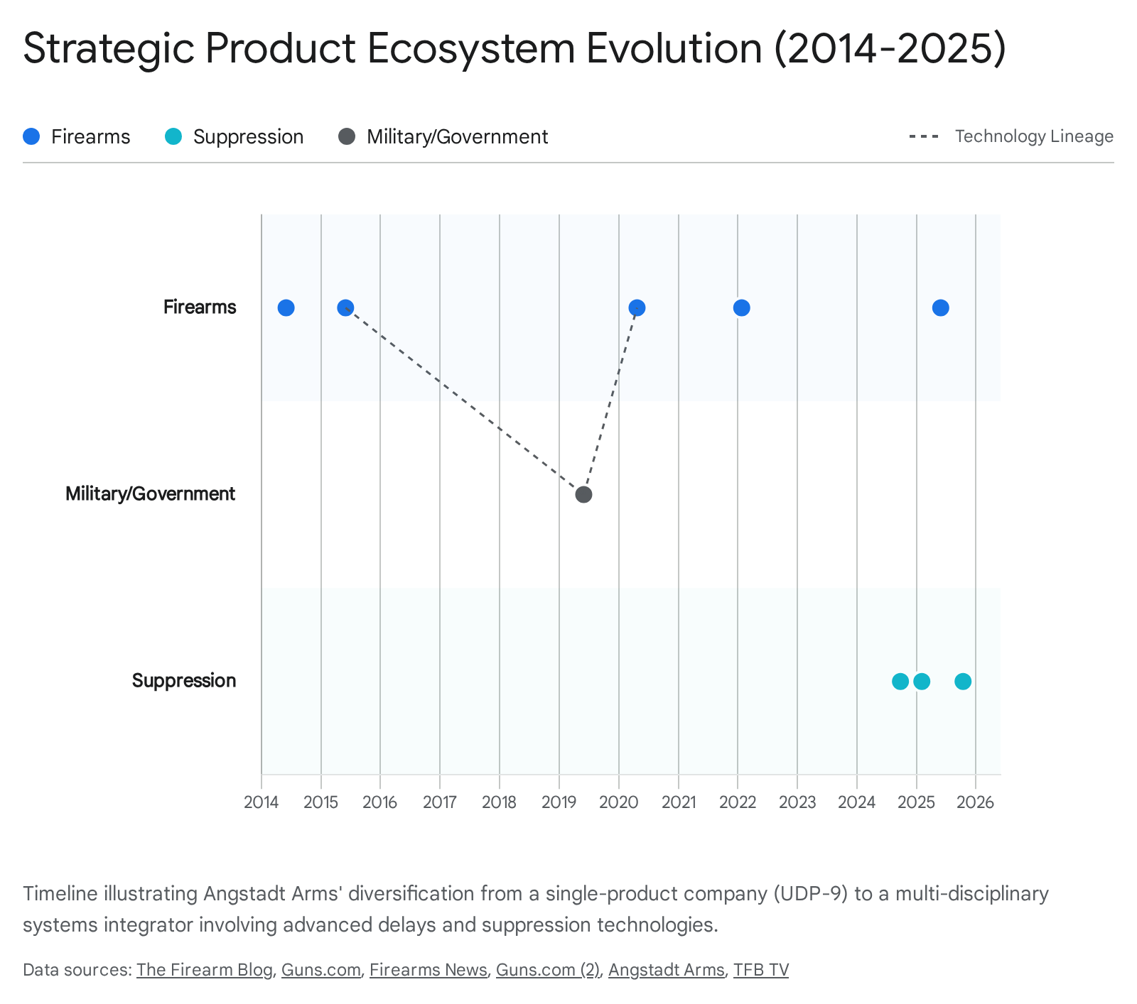 | 2024 | Vanquish Launch | Introduction of the Vanquish system—an integrally suppressed barrel utilizing ported technology to eliminate the need for subsonic ammo. This marks the entry into the “Systems Integrator” phase.10 |