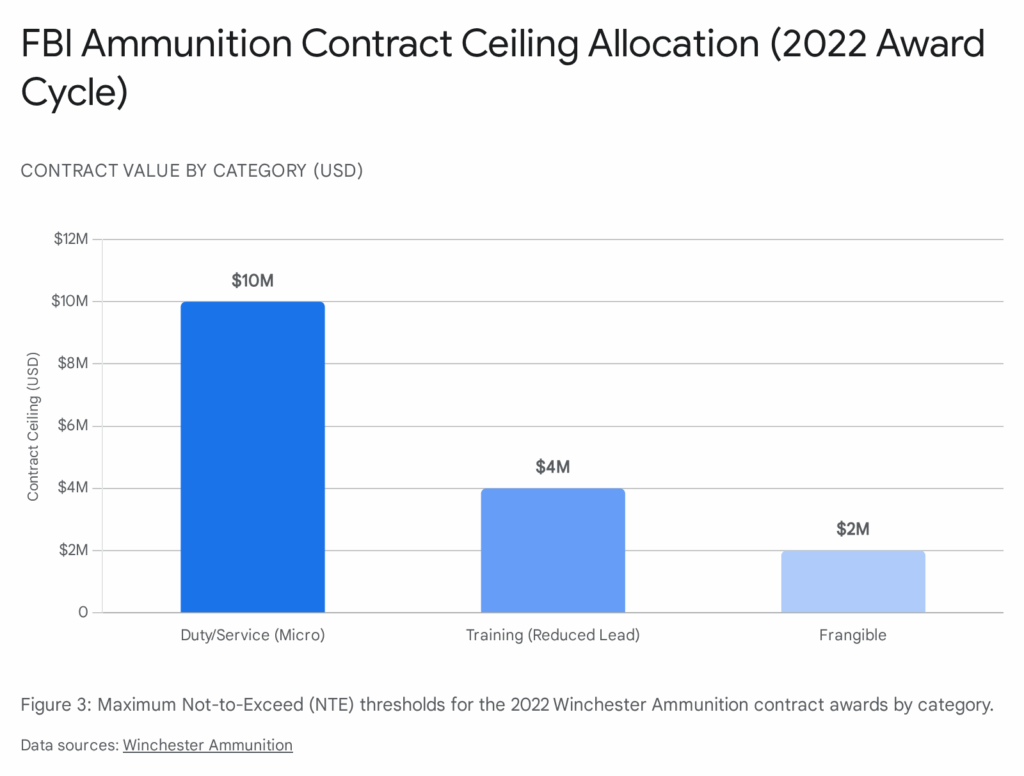 In a decisive procurement action in early 2022, the FBI awarded a massive, annually renewable five-year contract to Winchester Ammunition.9 This award effectively consolidated the Bureau’s primary 9mm needs under the Olin Corporation subsidiary. The contract includes three distinct Categories: