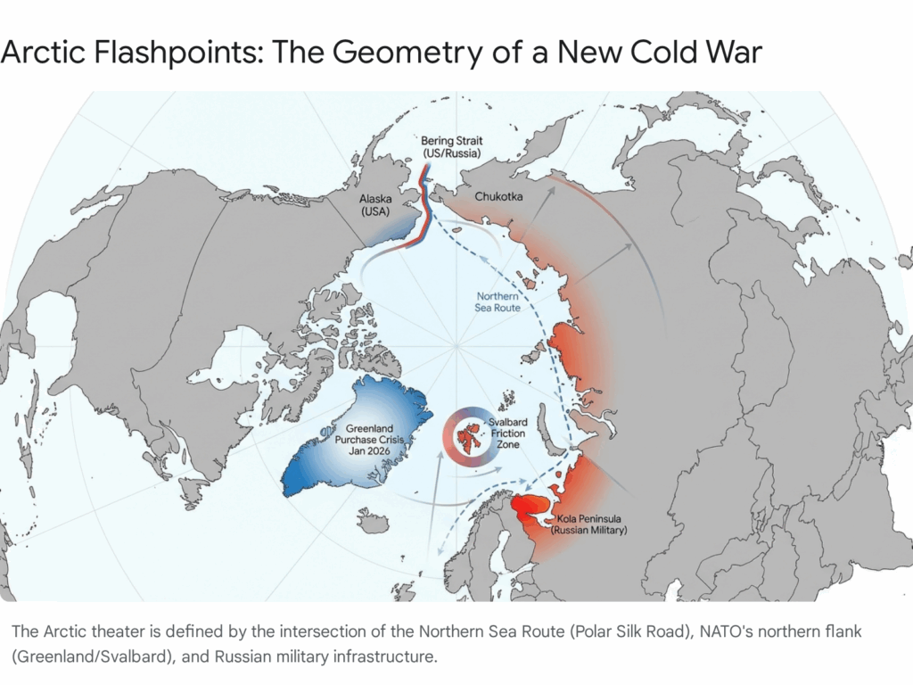 - Flashpoints: Svalbard and the Bering Strait are emerging as friction points where NATO and Russian/Chinese assets operate in close proximity. The unique demilitarized status of Svalbard makes it a potential target for “gray zone” operations by Russia to test NATO resolve.34