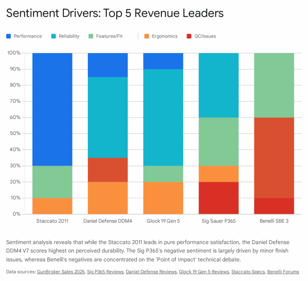 RankBrandModelTypeCaliberEst. Volume (Units)Est. Revenue ($M)Sentiment (Pos/Neg)Primary Market Driver