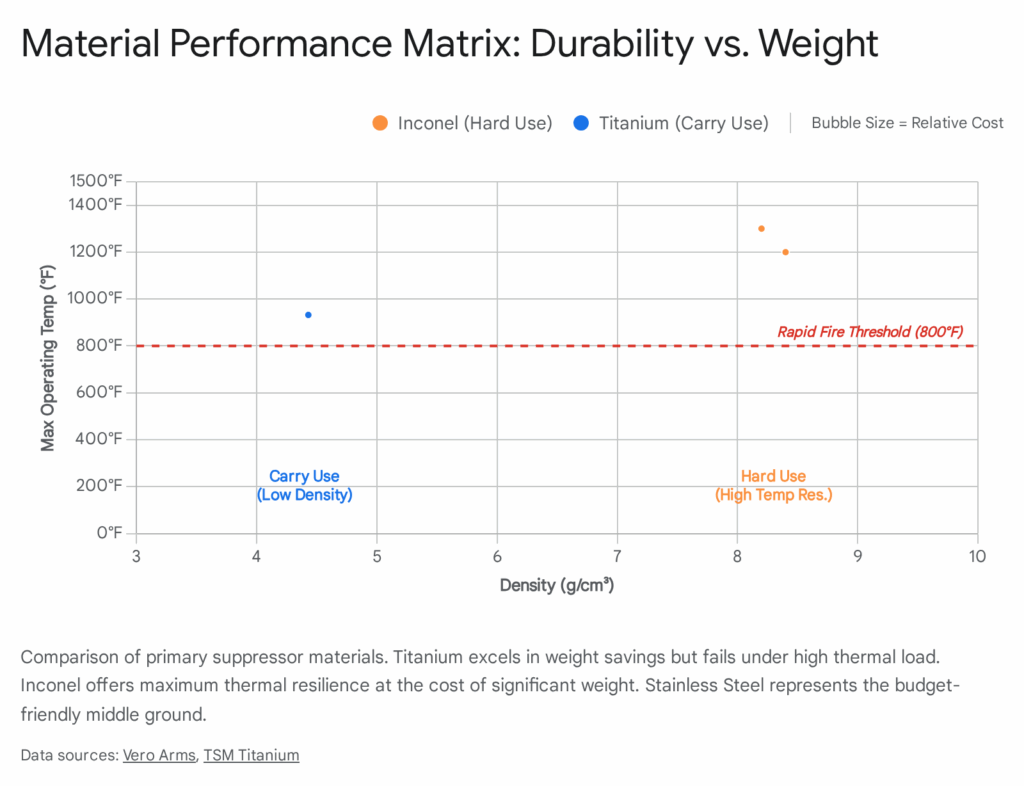 The material composition of the suppressor is not merely a cosmetic choice; it dictates the firing schedule (how fast and how long you can shoot), the weight (maneuverability), and the lifespan of the unit. The “Big Three” materials—Titanium, Inconel, and Stainless Steel—form the basis of all purchasing decisions.