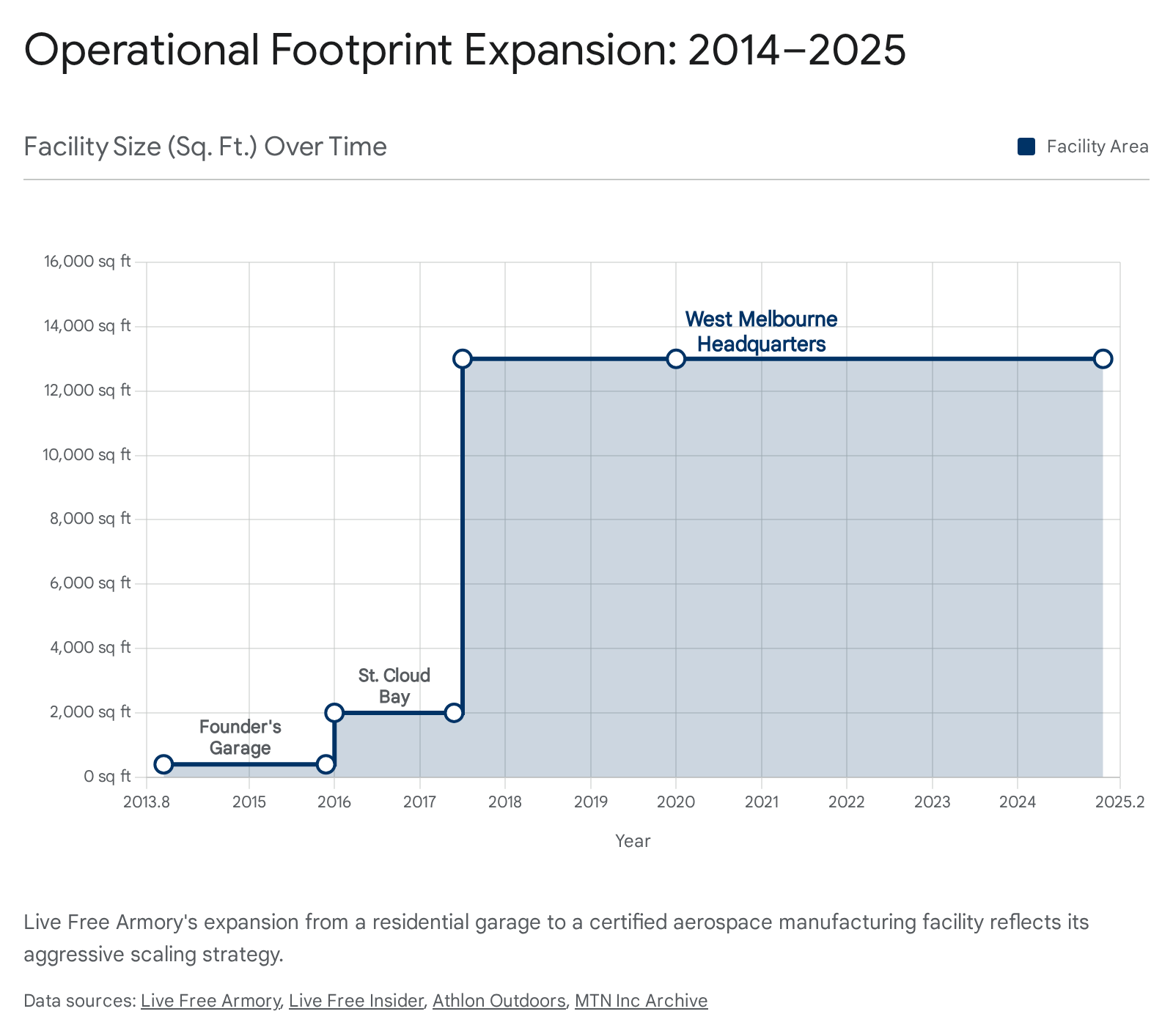 | 2016 | Expansion to St. Cloud | Moved to 2,000 sq ft industrial bay. Scaled LF15/LF10 rifle production. Transition from parts to full firearms. | 6 |