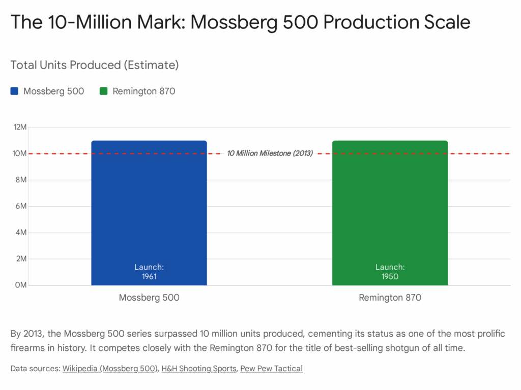 15. Mossberg 500 Surpasses 10 Millionth Production Landmark | Oklahoma City, accessed January 16, 2026, https://hhshootingsports.com/mossberg-500-surpasses-10-millionth-production-landmark/