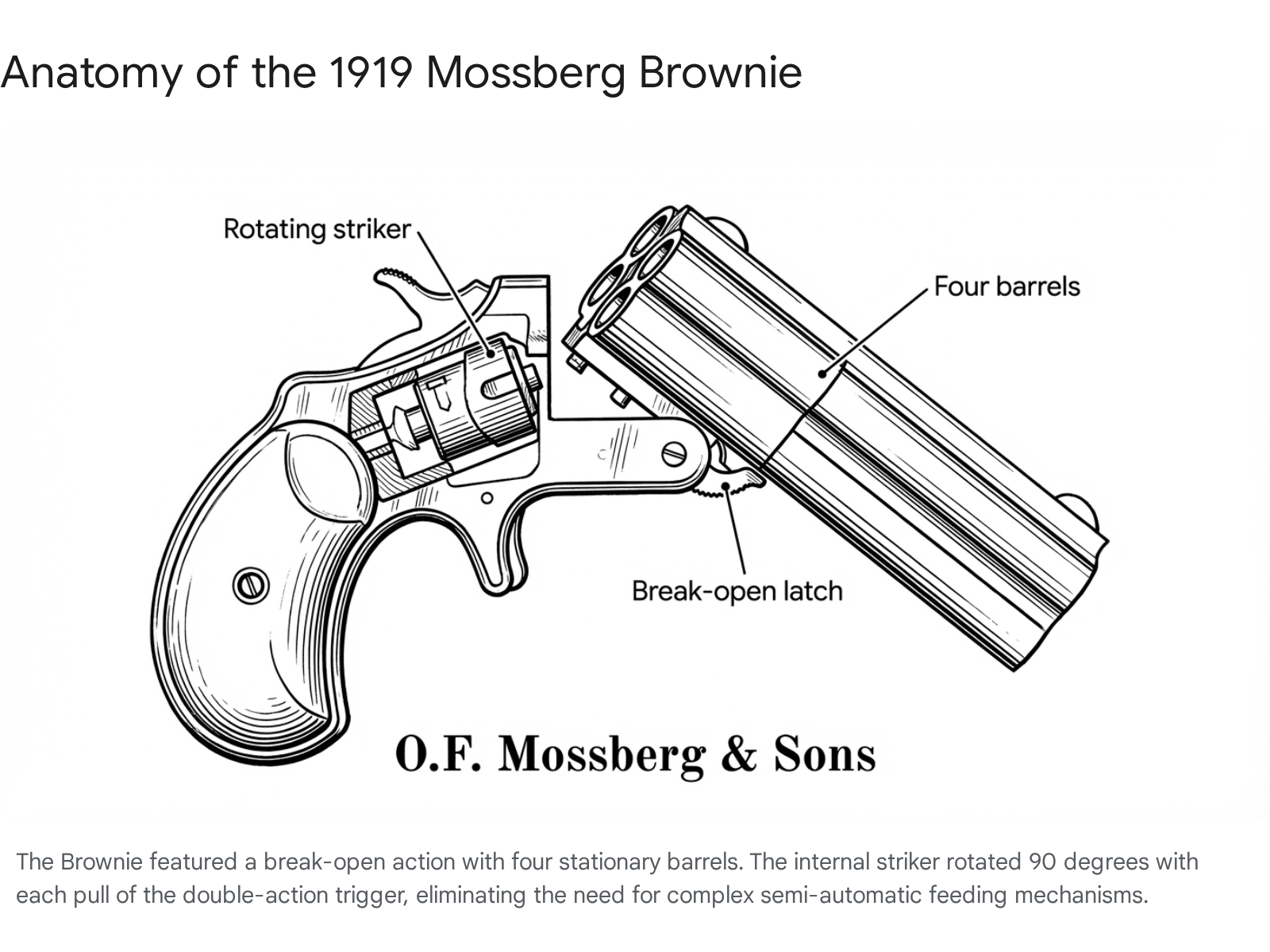 7. Mossberg’s First Pistol – The 1919 Brownie | thefirearmblog.com, accessed January 16, 2026, https://www.thefirearmblog.com/blog/2019/01/07/mossbergs-first-pistol-the-1919-brownie/