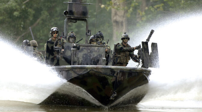 Main image obtained from Wikipedia on October 11, 2025. FT. KNOX, Ky. (Aug. 25, 2007) – Special Warfare Combatant-craft Crewmen (SWCC) transit the Salt River in northern Kentucky during pre-deployment, live-fire training. SWCCs attached to Special Boat Team (SBT) 22 based in Stennis, Miss., employ the Special Operations Craft Riverine (SOC-R), which is specifically designed for the clandestine insertion and extraction of U.S. Navy SEALs and other special operations forces along shallow waterways and open water environments. U.S. Navy photo by Mass Communication Specialist 2nd Class Jayme Pastoric (RELEASED)
