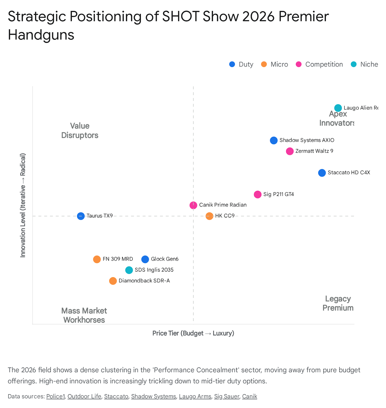 This report provides an exhaustive technical and market analysis of the top 20 pistols of SHOT Show 2026. It dissects not only the specifications of these new entrants but also the strategic imperatives driving their development, the geopolitical contexts influencing their adoption—such as the German Bundeswehr’s selection of the CZ P13—and the broader economic implications for agency and civilian procurement.