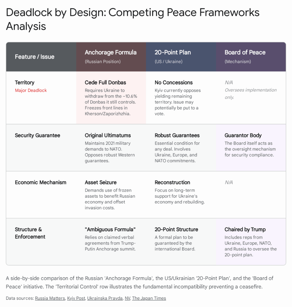 The “Board of Peace,” championed by the Trump administration, has emerged as a controversial mechanism intended to oversee the implementation of peace deals, not just in Ukraine but globally (including Gaza).