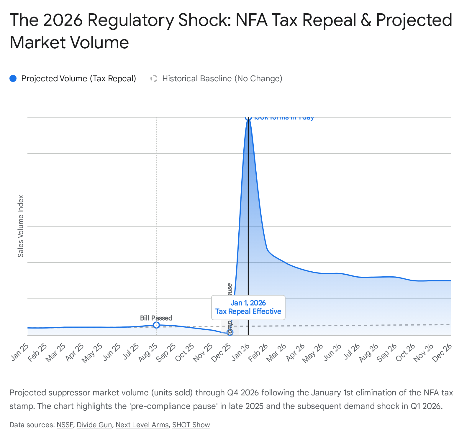 The global small arms industry stands at a historic inflection point as it converges on Las Vegas for SHOT Show 2026. For nearly a century, the National Firearms Act (NFA) of 1934 served as a formidable regulatory and financial bottleneck, suppressing the growth of the suppressor market through a mandatory $200 tax stamp and onerous registration procedures characterized by indeterminate wait times. The legislative landscape underwent a seismic shift with the passage of the “One Big Beautiful Bill,” which included the repeal of the federal tax stamp for suppressors effective January 1, 2026.1 This legislative change has catalyzed an instantaneous and radical transformation of the market, moving suppressors from a niche, “lifetime investment” category to a commoditized accessory market akin to optics or muzzle devices.