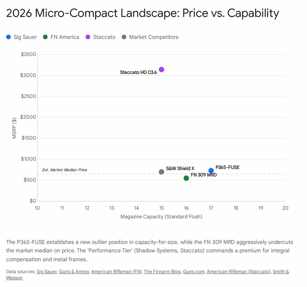 | 09 | FN America | FN 309 MRD | Pistol | Market Disruption: Aggressive $549 price point targeting the budget/utility Glock market.20 |
