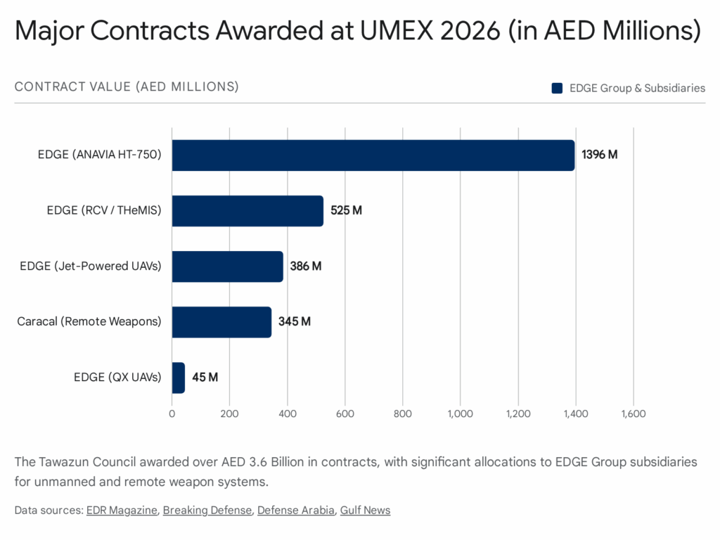 The financial backbone of UMEX 2026 was the Tawazun Council, the UAE’s defense procurement authority. The volume and nature of the contracts signed provide a clear roadmap of the UAE’s defense strategy.