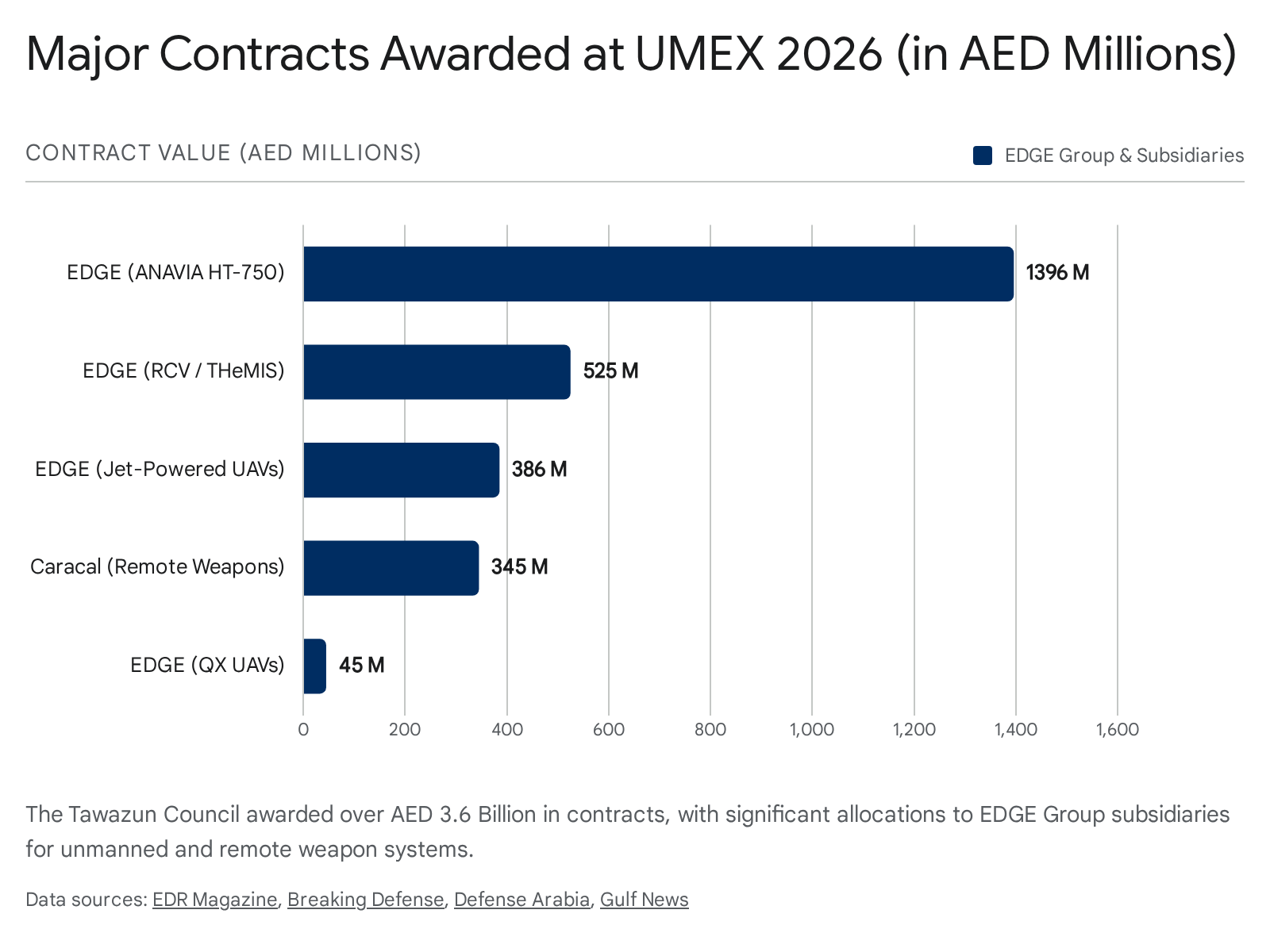 - Breaking Defense. (2026, January 20). UMEX opens with $240 million in contracts to EDGE Group. Retrieved from breakingdefense.com