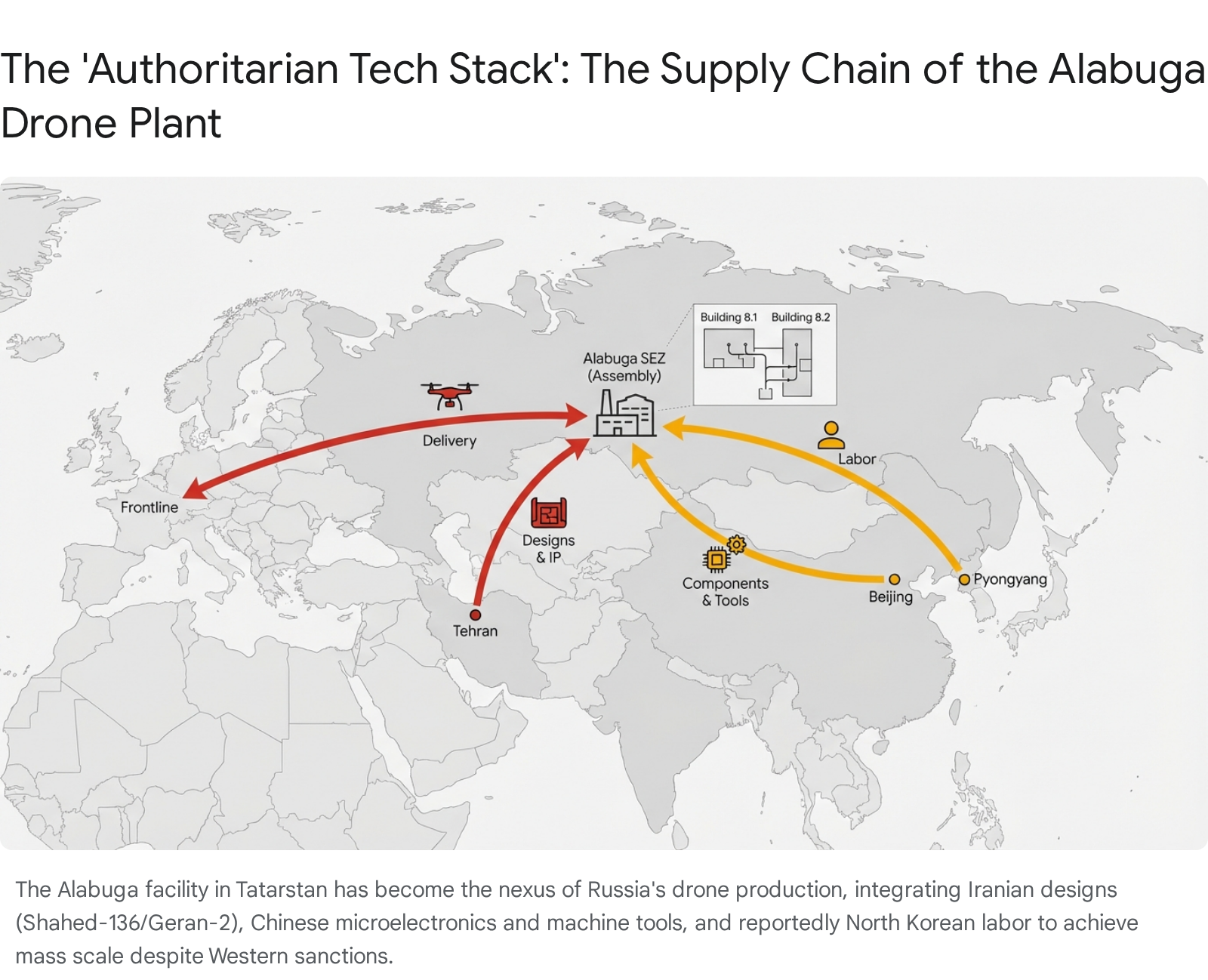 This facility is a symbol of a new “Authoritarian Tech Stack,” where Russia integrates technologies and labor from its few remaining allies.