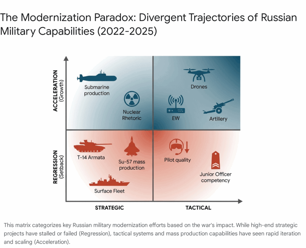 Is the war in Ukraine a setback or an accelerator for Russia’s military modernization? The answer is a nuanced both, but the weight falls heavily on the side of strategic setback masked by tactical acceleration.