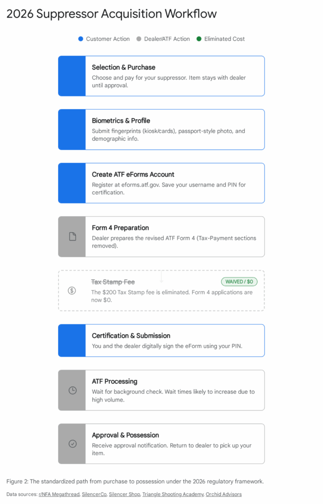 A critical insight for the 2026 market is the inverse relationship between cost and wait time. With the $200 barrier removed, application volume has spiked. While the eForms system was achieving 2-day approvals in early 2025 12, the massive influx of “free stamp” applications in 2026 is expected to strain ATF processing capacity.