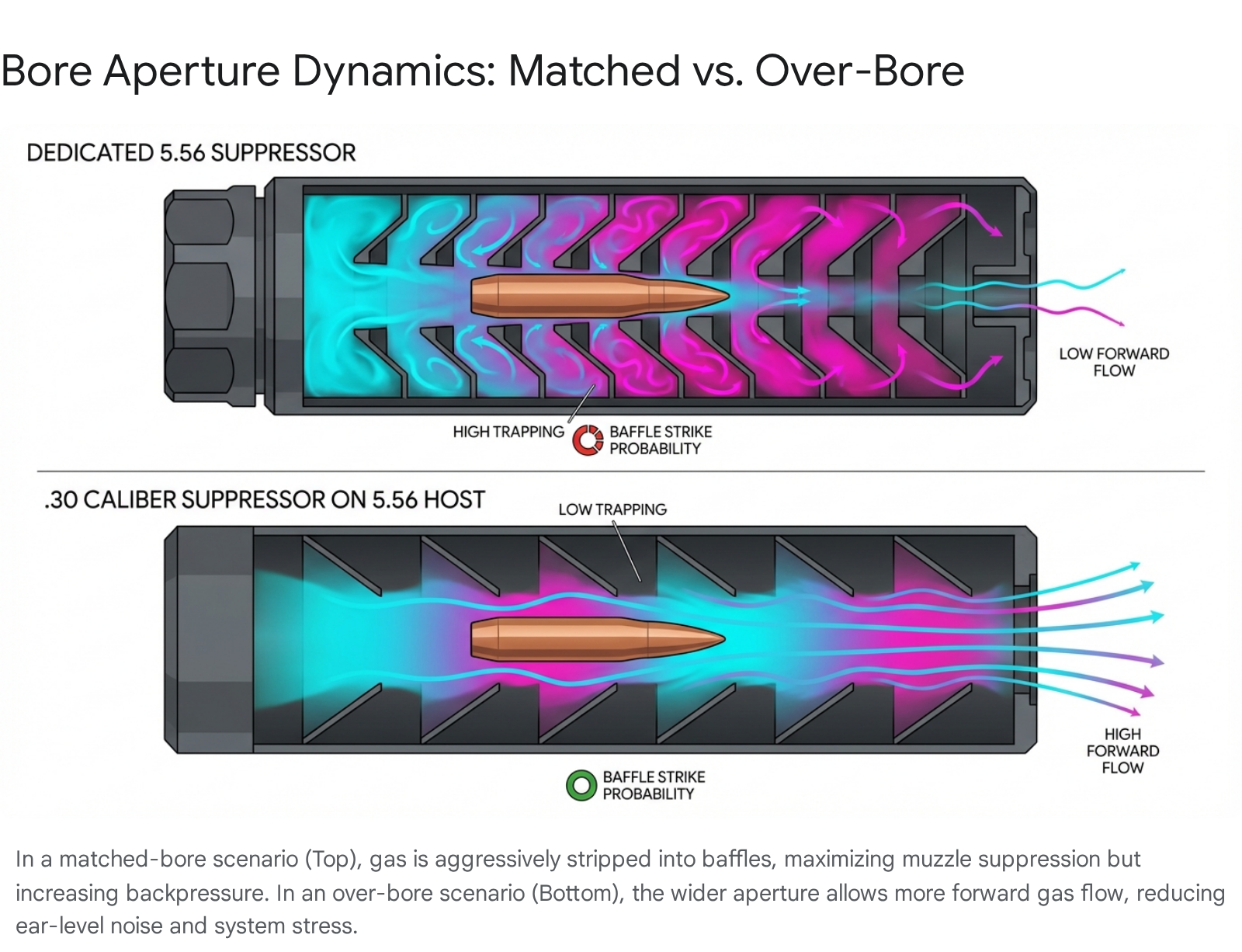 This question stems from a desire for economic efficiency—buying one expensive item to serve multiple hosts. Consumers often fear that “over-boring” (using a larger aperture suppressor on a smaller projectile) will result in unacceptable noise leakage and reduced performance. It reflects a misunderstanding of the physics of sound suppression versus the physics of gas dynamics.