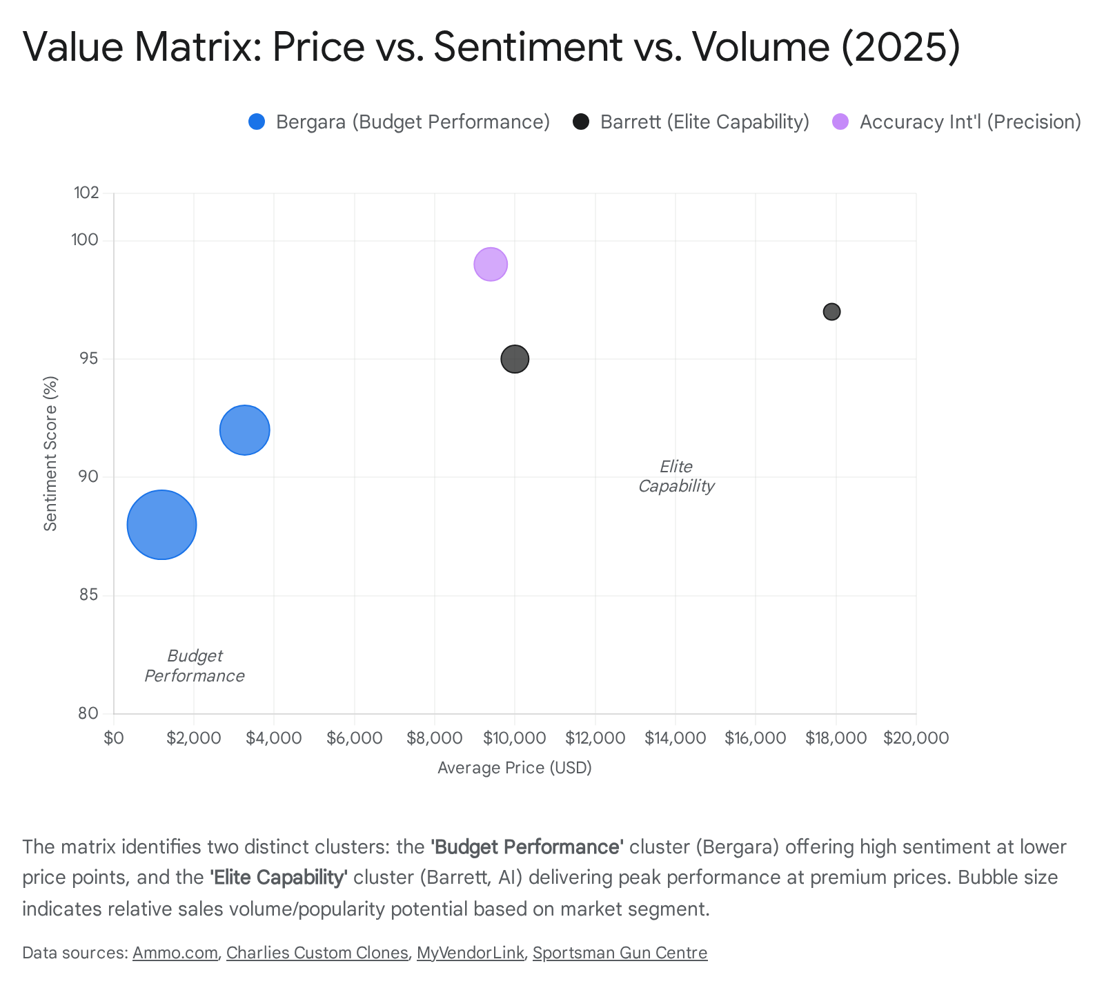 A clear “hollow middle” is forming. The market is aggregating at the top (Barrett/LMT >$4k) and the bottom (Bergara/Remington <$1.2k).