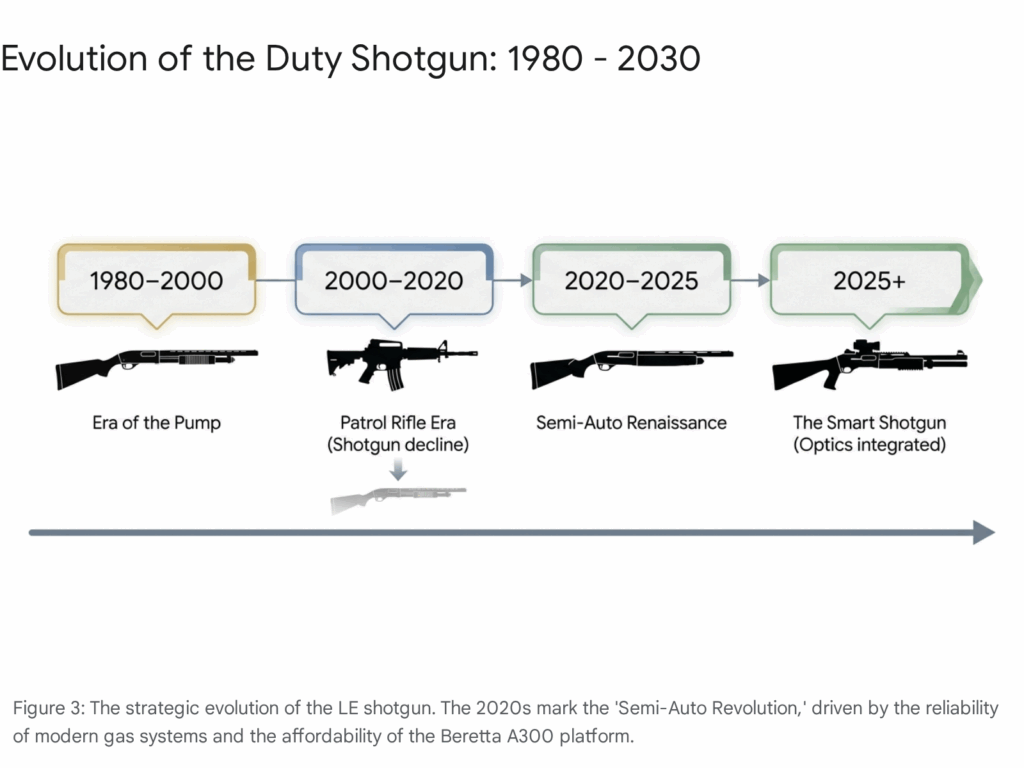 The data from 2025 paints a clear picture: the era of the shotgun as a crude “trench broom” is over. It has evolved into a precision instrument. The ascendancy of the Beretta A300 Ultima Patrol signals that agencies are ready to embrace semi-automatic technology if the price is right. Meanwhile, the endurance of the Remington 870 proves that logistical momentum is a powerful market force.