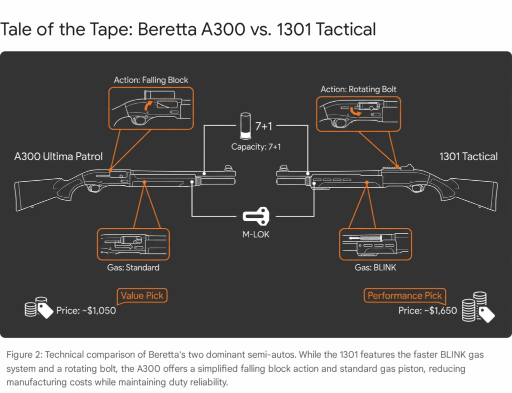- Price-to-Performance Ratio: The A300 delivers 90% of the capability of the 1301 for 60% of the price. This fits perfectly into the budgets of mid-sized departments that want to upgrade from pumps but cannot afford the “Benelli Tax”.21
